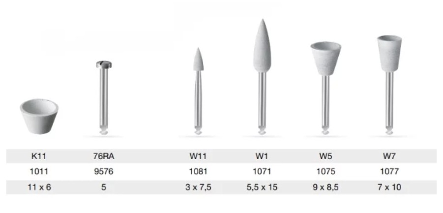 Σύστημα στίλβωσης με σωματίδια διαμαντιού για μέγιστη αποτελεσματικότητα, συνιστώμενο για εργασίες με υλικά σύνθετης ρητίνης, κεραμικά, αμάλγαμα ή χρυσό.