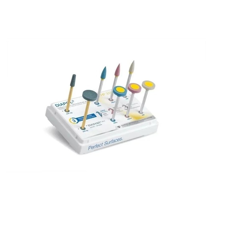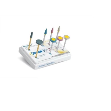 Σύστημα στίλβωσης με διαμαντόσκονη για μέγιστη αποτελεσματικότητα, ιδανικό για αποκαταστάσεις από σύνθετη ρητίνη και υβριδική κεραμική